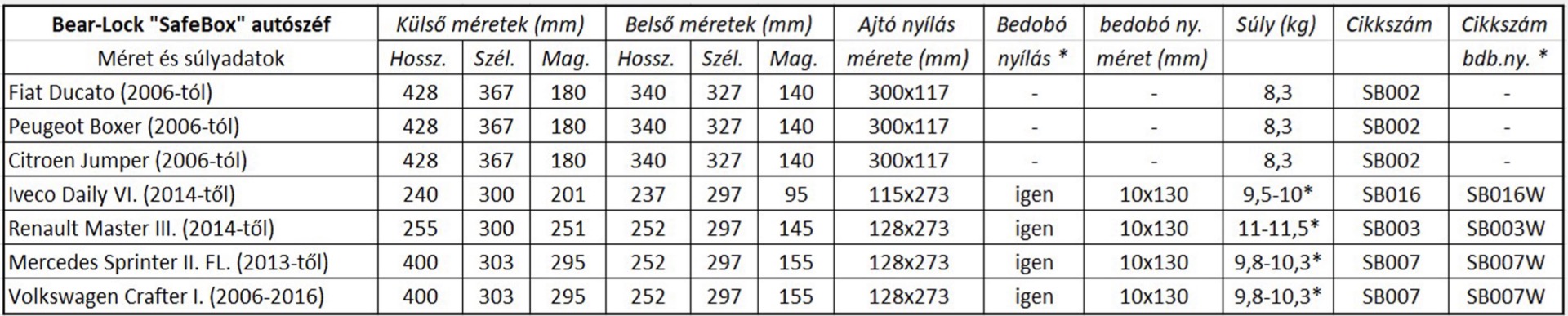 Belső méretek: 32 x 36 x 14 cm (Fiat Ducato)